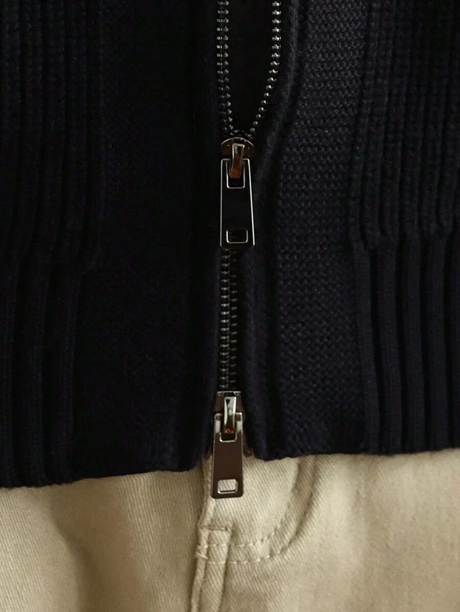 Lång herrcardigan med dragkedja och hög krage